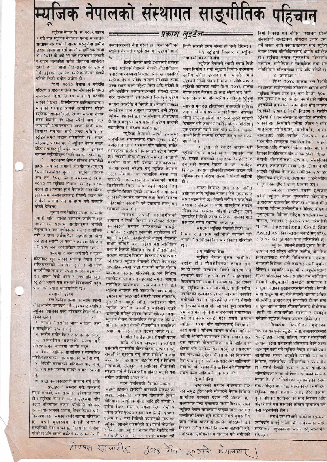 म्यूजिक नेपालको संस्थागत सांगीतिक पहिचान
