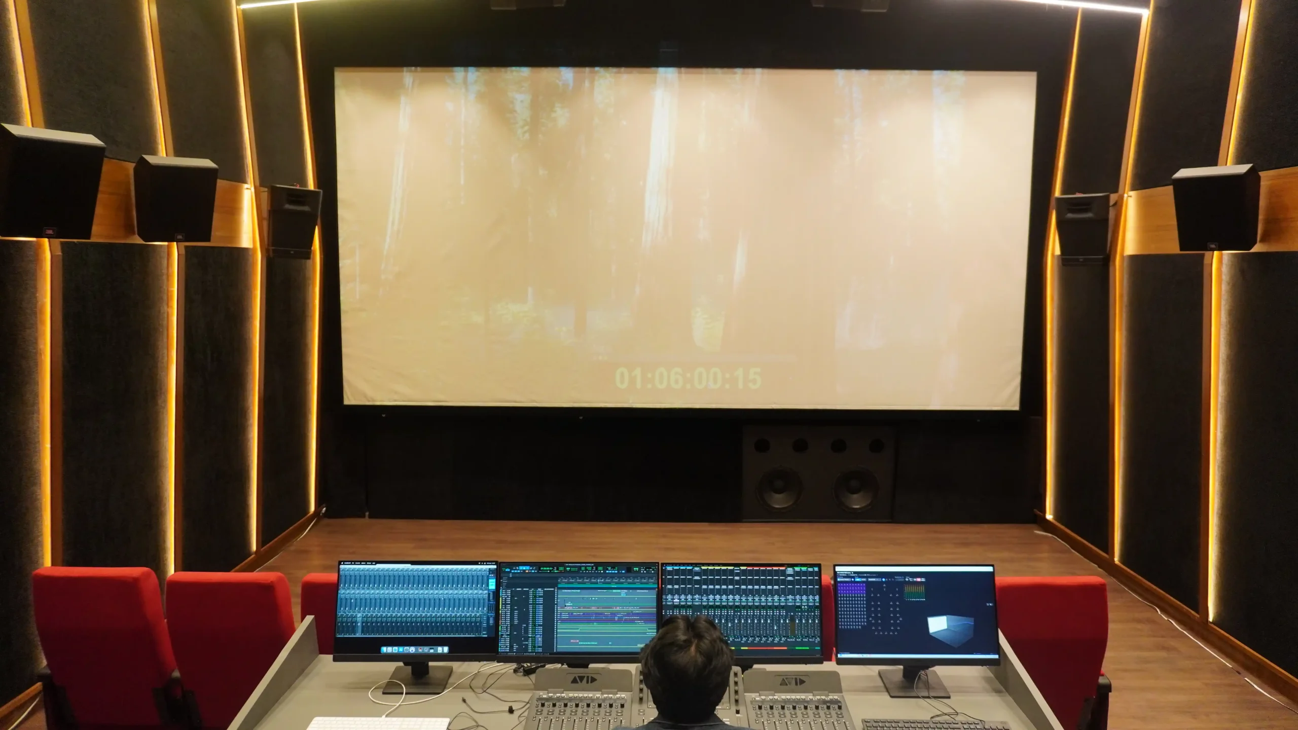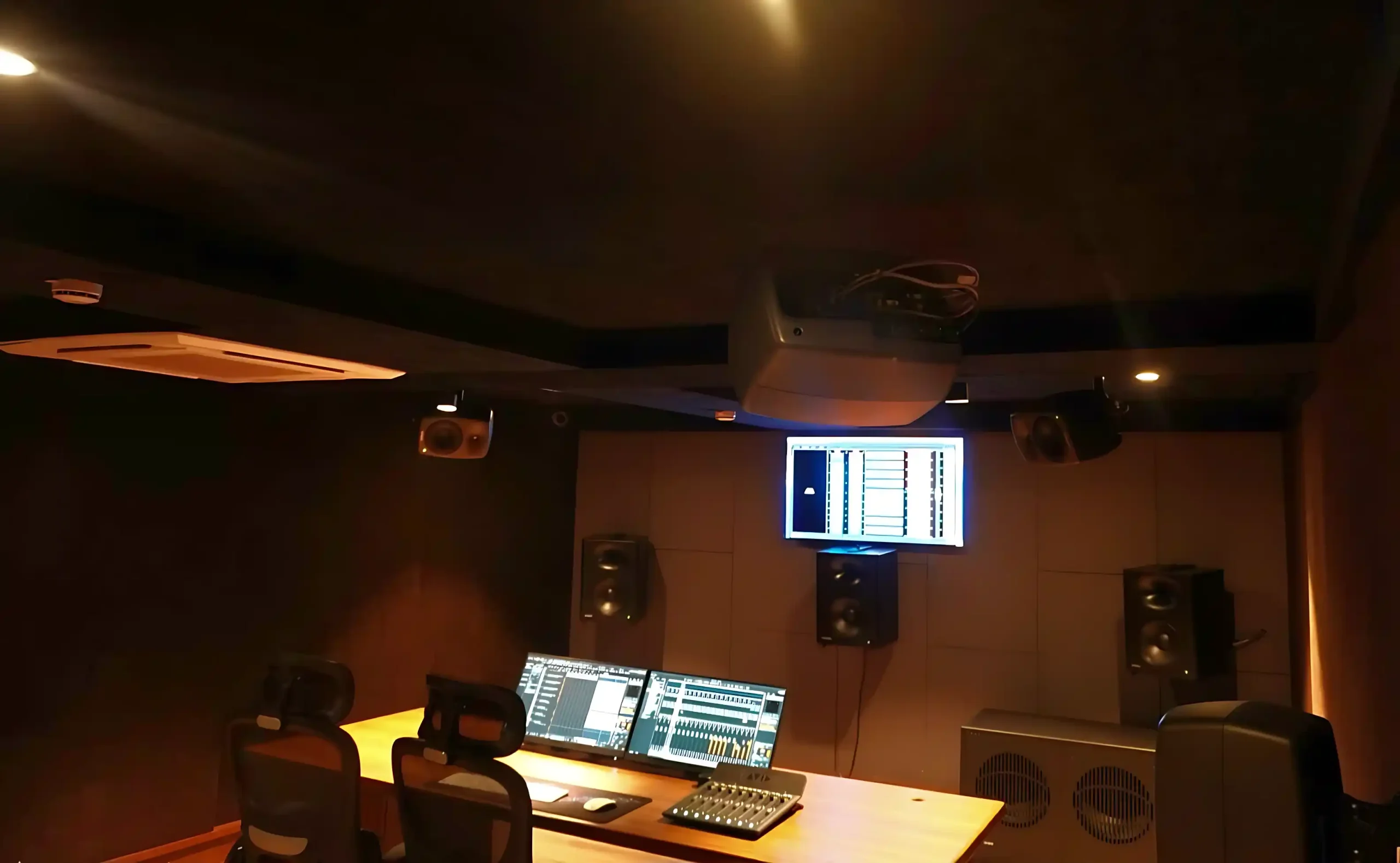 A state of the art, enabled 7.1.4 mixing environment designed for OTT content, Film Premix , Sound Design, Surround Music Mix (5.1 and 7.1), and high fidelity Mastering. Precision engineered acoustics, advanced monitoring, and licensed Dolby technology ensure world class audio production for music, films, and immersive.